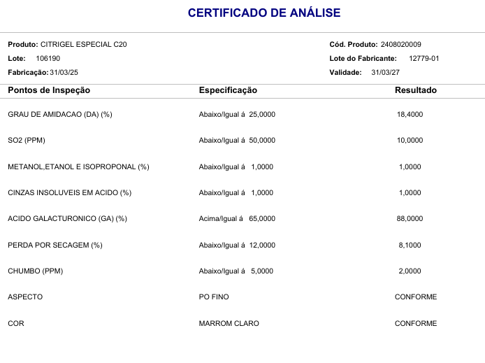 Pectinas de baixo grau de metoxilização gelificam melhor na presença de cálcio, na proporção de (0,6 - 0,9%)